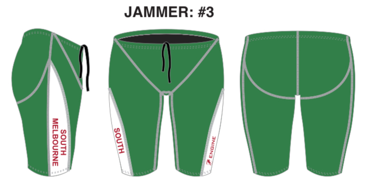 $58.00Green Engine Jammers with white side panel and club name in red. Size Chart: https://engineswim.com/pages/size-chart
